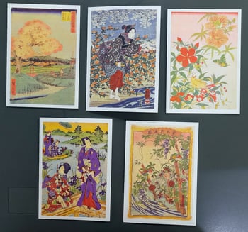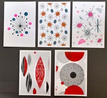 Set of 5 square greetings cards.